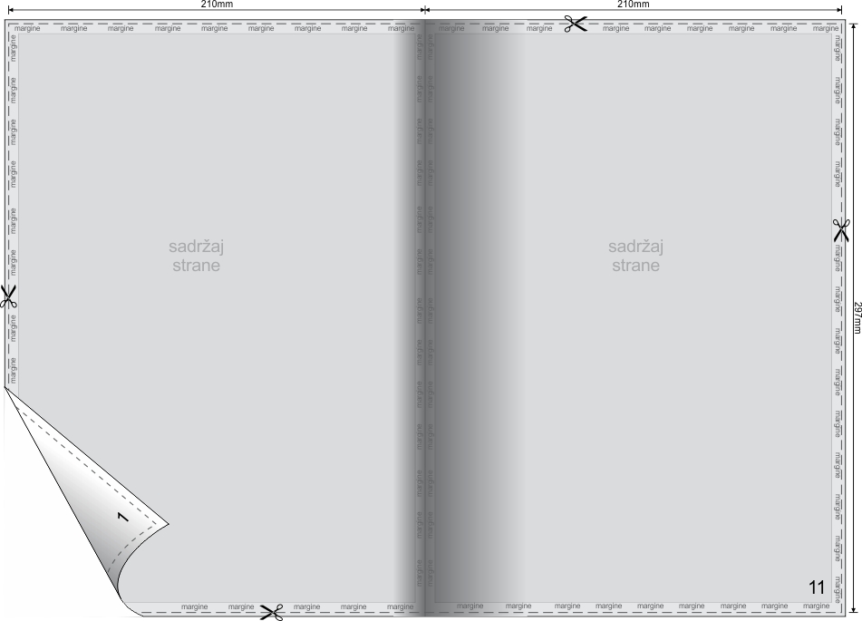 Primer prospekta sa dimenzijama, linijama za obrez i marginama