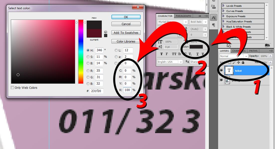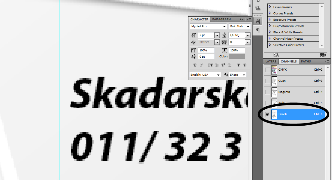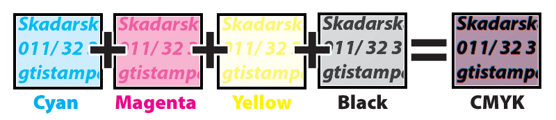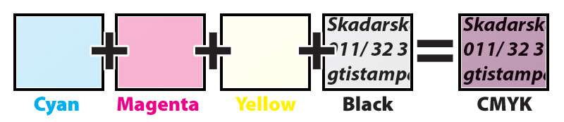 Kako se kolorna štampa radi iz četiri komponente, tj. boje (CMYK - Cyan - plava, Magenta - roze, Yellow - Žuta i Black - Crna) koje svojom kombinacijom daju sve ostale boje, tako je potrebno i te boje pravilno iskoristiti da bi se dobila odgovarajuća nijansa. S obzirom da je crna boja, jedna od osnovnih komponenti, nema potrebe u nju dodavati ostale komponente. Što znači, crna boja se radi isključivo iz crne boje. Njena CMYK vrednost treba da bude C:0 M:0 Y:0 K:100.