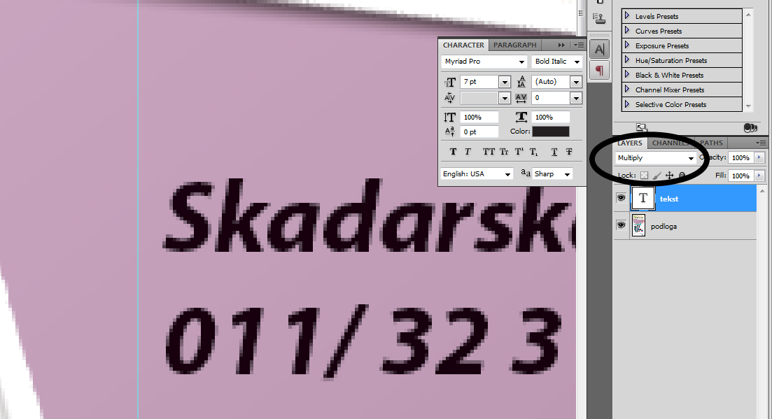 Primer loše i dobro urađenog crnog teksta na toniranoj podlozi
