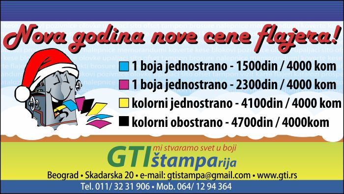 - Flajere rađene u nekom drugom kolornom režimu (na primer RGB) ćemo uraditi, ali ne garantujemo verodostojnost boja.